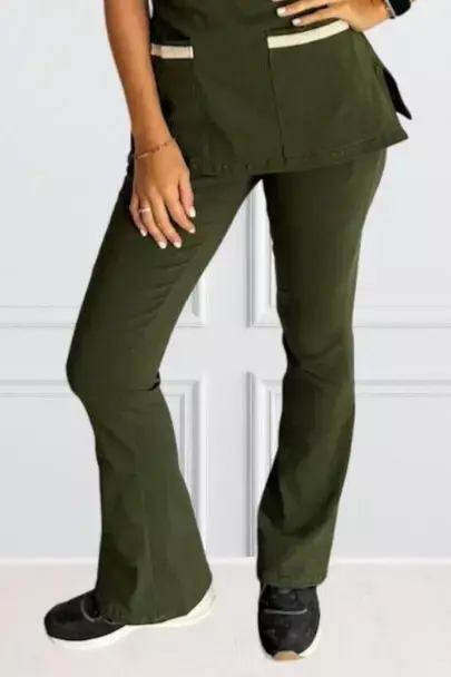 Pantalon oxford de tela elastizada. Cuenta con dos bolsillos laterales profundos, tiro medio alto y elastico en la cintura.